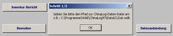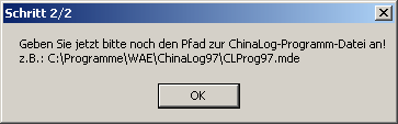 z.B.: C:\Programme\WAE\ChinaLog2000\Data\CLDat.mdb