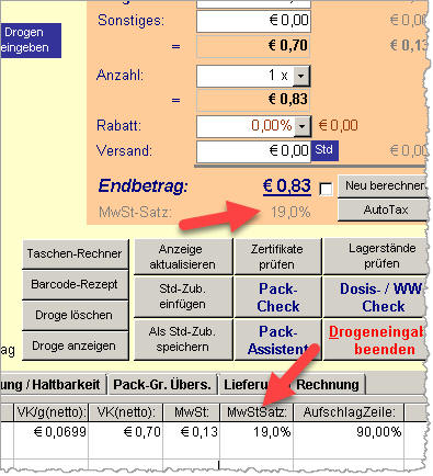 Bei den Drogen wird der jeweilige Mehrwertsteuer-Typ (Voll/ermäßigt) gepflegt, sodass sie bei den Drogen an sich nicht umstellen müssen.
